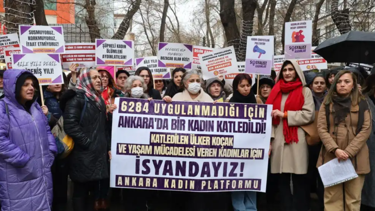 Ankara’da bir kadının öldürülmesi ve bir kadının ağır yaralanmasının ardından kadınlar, 6284 sayılı Kanun’un etkin uygulanmamasına dikkat çekmek amacıyla Yüksel Caddesi’nde basın açıklaması yaptı. Ankara Kadın Platformu çağrısıyla düzenlenen eylem, 31 Ocak Cumartesi günü saat 15.00’te İnsan Hakları Anıtı önünde gerçekleştirildi. Basın açıklamasına çok sayıda kadın ve sivil toplum temsilcisi katılırken, kadın cinayetlerinin önlenebilir olduğu ve koruma mekanizmalarının işletilmediği yönünde mesajlar verildi.