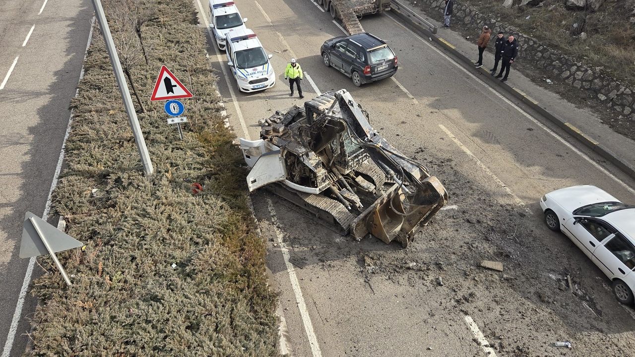 Yola düşen kepçenin kaldırılması için çalışma başlatılırken, polis ekipleri tır sürücüsünün ifadesine başvurdu. Olayla ilgili inceleme sürüyor.