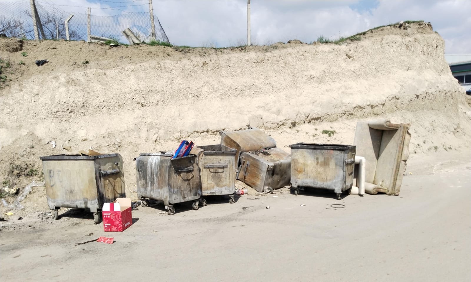 İnönü Mahallesi 1763/1 Sokakta ilk olarak görüntülediğimiz çöp alanında çöp konteynerlerinin ters çevrildiği ve geniş bir alana çöplerin yayıldığı görüntülendi.