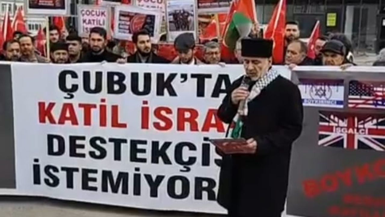 Çubuklu Sivil Toplum kuruluşu yöneticileri "Çubuk'ta Katil İsrail destekçisi istemiyoruz" pankartı açarken. Pankart üzerinde İsrail, ABD ve İngiltere bayraklarının üzerine yazılan yazılar Filistin'deki katliama tepki örneği taşıyordu. Pankart üzerinde İsrail'e soykırımcı, ABD'ye katil, İngiltere'ye ise işgalci göndermesi yapıldı.