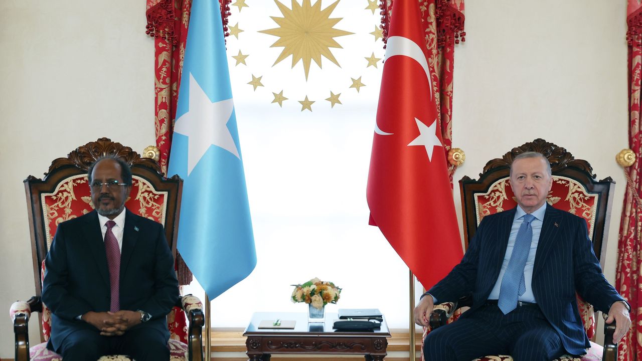 Cumhurbaşkanı Erdoğan ile Somali Cumhurbaşkanı Hasan Şeyh Mahmud, Cumhurbaşkanlığı Dolmabahçe Çalışma Ofisi’nde önce baş başa, ardından heyetler arası görüşme gerçekleştirdi. Görüşmelerde iki ülke arasındaki siyasi, askeri, enerji ve stratejik iş birlikleri ele alındı.