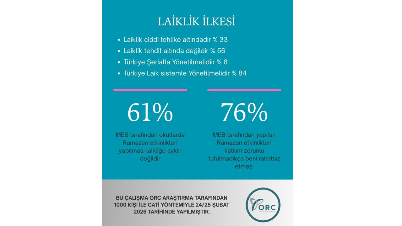 Araştırmada dikkat çeken bir diğer başlık ise Milli Eğitim Bakanlığı’nın okullarda düzenlediği Ramazan etkinliklerine yönelik tutum oldu. Katılımcıların yüzde 61’i, MEB tarafından okullarda Ramazan etkinlikleri yapılmasının laikliğe aykırı olmadığını ifade etti.