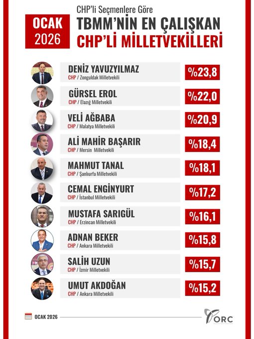 Ankette öne çıkan ve ilk 10’a giren diğer CHP’li milletvekilleri ise şöyle sıralandı:
