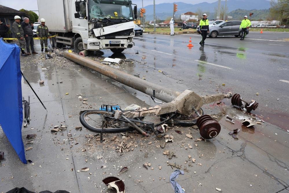 Çarpmanın etkisiyle savrulan kamyon, yol kenarında bulunan beton elektrik direğine de hızla çarptı. İkinci çarpışma, kazanın en trajik anını beraberinde getirdi.