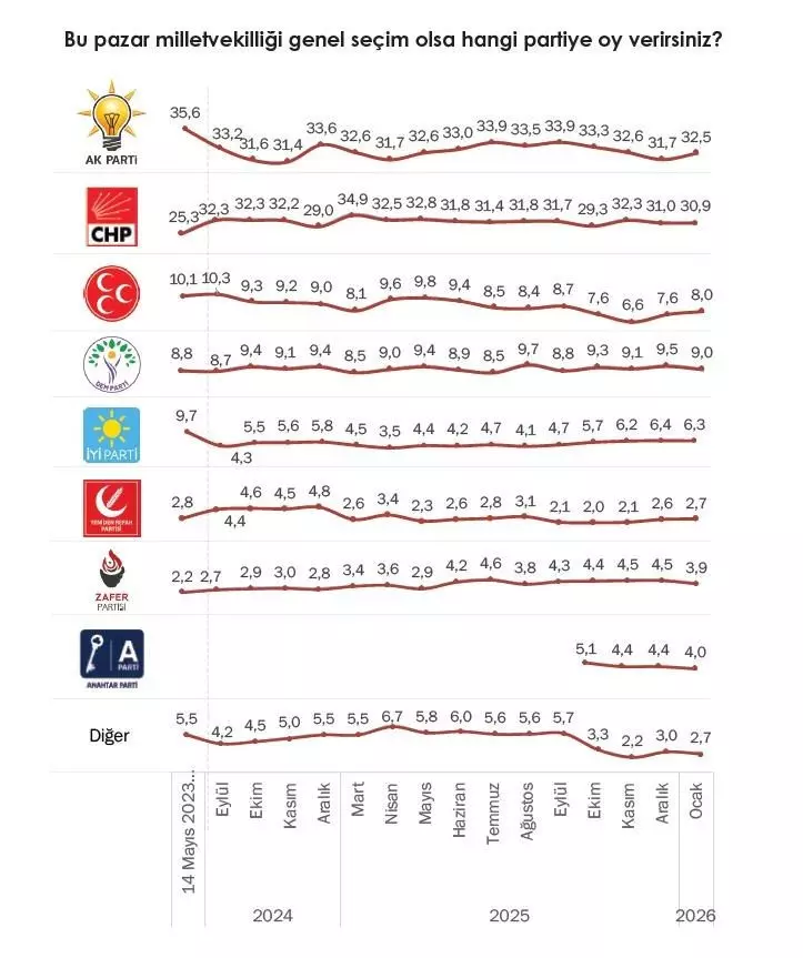 Ocak 2026’da açıklanan diğer kamuoyu araştırmaları da benzer bir tablo ortaya koymuştu.