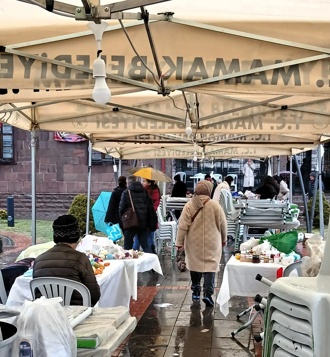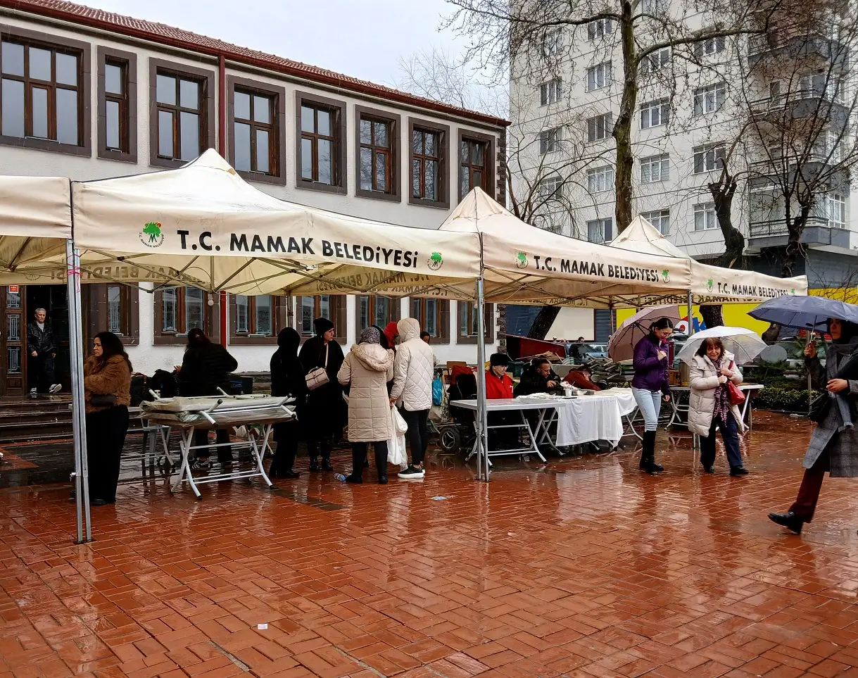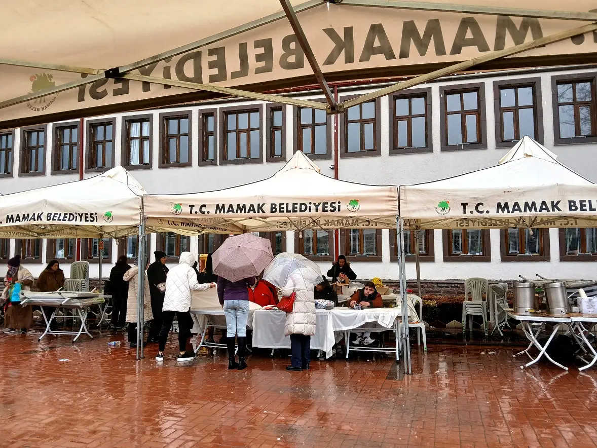 Mamak Belediyesi, açık havada gerçekleştirilen ve sağanak yağışa rağmen bu etkinliğe katılanlara “Çaylar Bizden” uygulaması ile gün boyu sıcak çay ikramında bulunuyor.