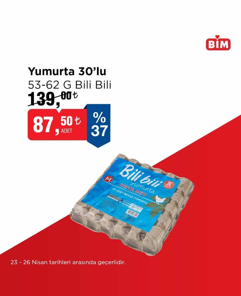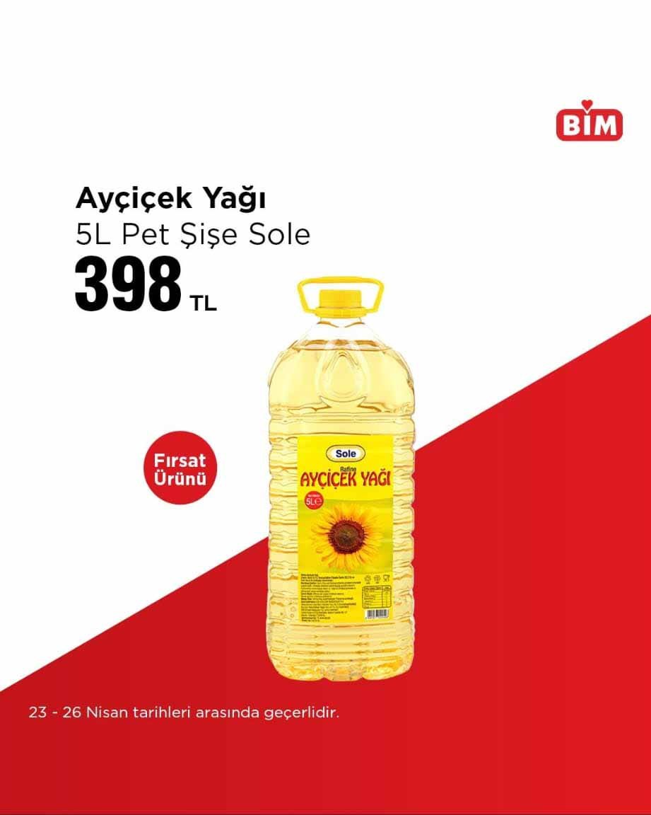 BİM, 23-26 Nisan 2026 tarihleri arasında geçerli olacak yeni “Fırsat Ürünleri” kampanyasını duyurdu. Temel gıda ürünlerinde dikkat çeken indirimlerin yer aldığı katalogda, özellikle yumurta, ayçiçek yağı ve toz şeker fiyatları öne çıkıyor. Kampanya, sınırlı süreyle ve stoklarla sınırlı olarak raflarda yer alacak.