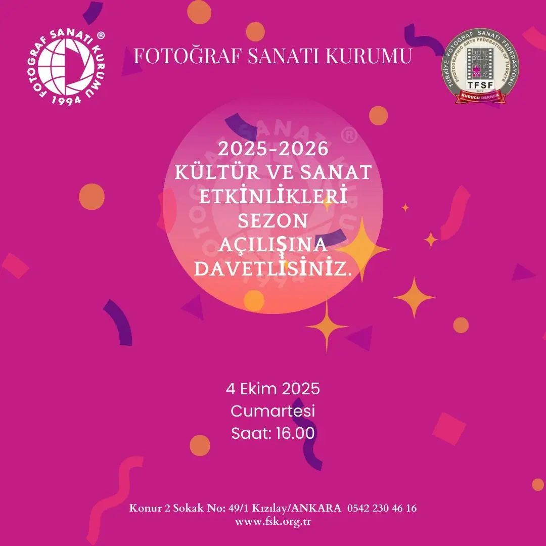 Birçok kurum ile de ortak yapacakları proje ve sergi çalışmaları için görüşmelerinin devam ettiğini söyleyen Ataç, “Yeni sezonda yepyeni atölye eğitimleri olacağının müjdesini de vermekten mutluluk duyuyoruz. Bütün üyelerimizden gelebilecek her türlü atölye eğitimi ve proje fikrine açık olduğumuzu belirtirken, fotoğrafseverlerin ve üyelerimizin desteği ile güzel işler yapabileceğimizin farkındayız. Onların desteklerini ve çalışmalara katılımlarını her zaman bekliyoruz. Yeni sezona MERHABA derken, yine yeniden “Fotoğrafta Bir Adım Daha İleri” mantığının ışığında, “FSK Her Yerde” sloganı ile yeni sezonda da yolumuza devam edeceğimizi belirterek 2025-2026 Kültür ve Sanat Etkinlikleri Sezonunun hepimiz için hayırlı olmasını diliyoruz.” ifadelerini kullandı.