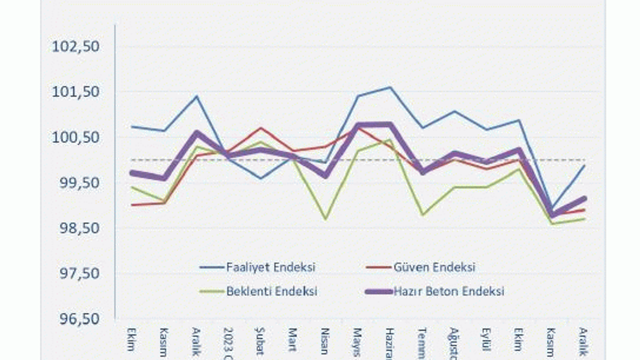 Raporu değerlendiren Türkiye Hazır Beton Birliği (THBB) Yönetim Kurulu Başkanı Yavuz Işık, “6 aydır pozitif tarafta yer alan Faaliyet Endeksi kasım ayında daralarak negatif tarafa geçmiş, aralık ayında ise toparlanma gösterse de eşik değerin üstüne çıkamamıştır. Hem Beklenti hem de Güven Endeksleri aralık ayında negatif tarafta yer almıştır. Bu kapsamda 2024 yılının ocak ayında faaliyette ciddi bir yükseliş beklenmemelidir.” dedi.