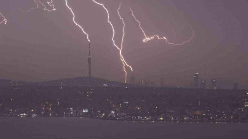 İstanbul’un en yüksek yapısı olan Çamlıca Kulesi’ne ise çok sayıda şimşek düştüğü anlar kaydedildi. Şimşeklerin adeta birbirleri ile dansı çekilen görüntülerle tüm güzelliği gözler önüne serildi.