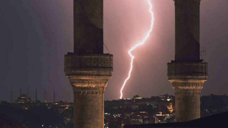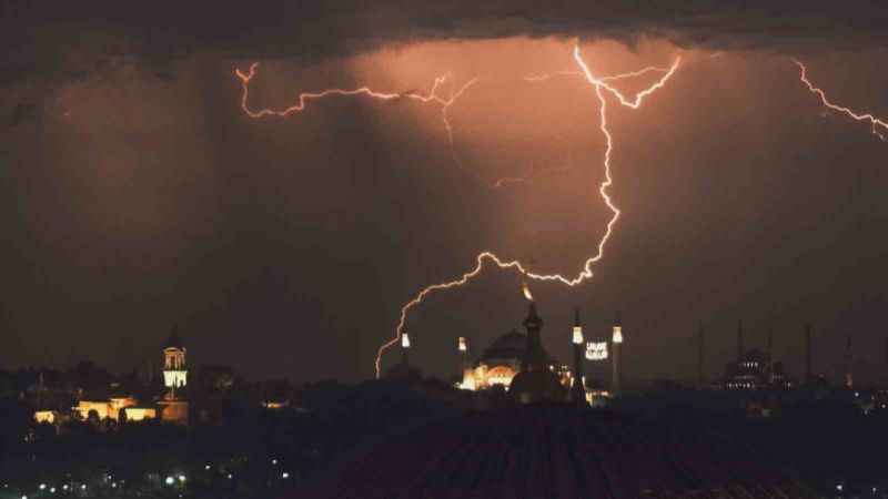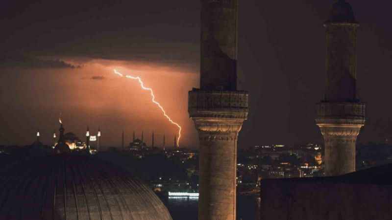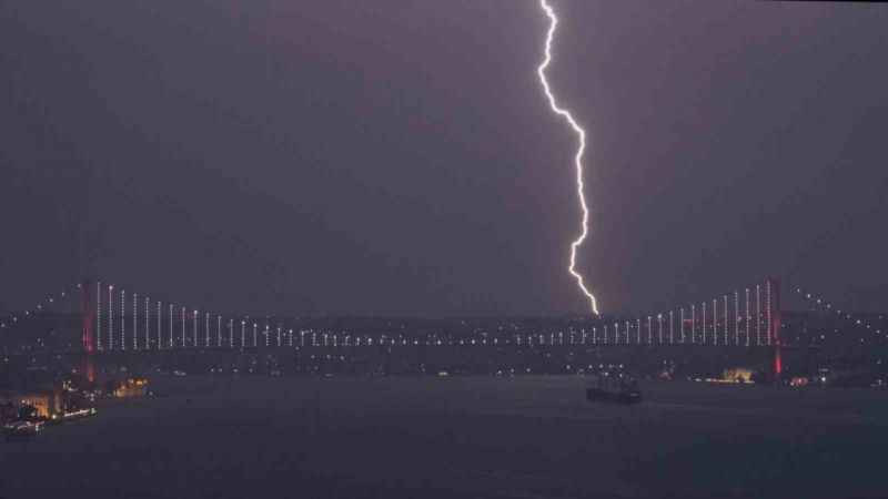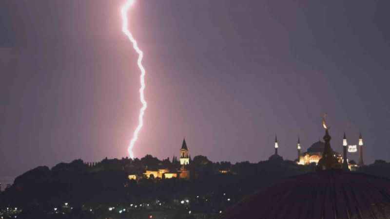 Çoğu zaman görenlerin ürperdiği ve sesinden dolayı korktuğu şimşeklerin İstanbul’un simge yapıları ile birlikte görüntülenmesi kartpostallık manzaralar oluşturdu.
