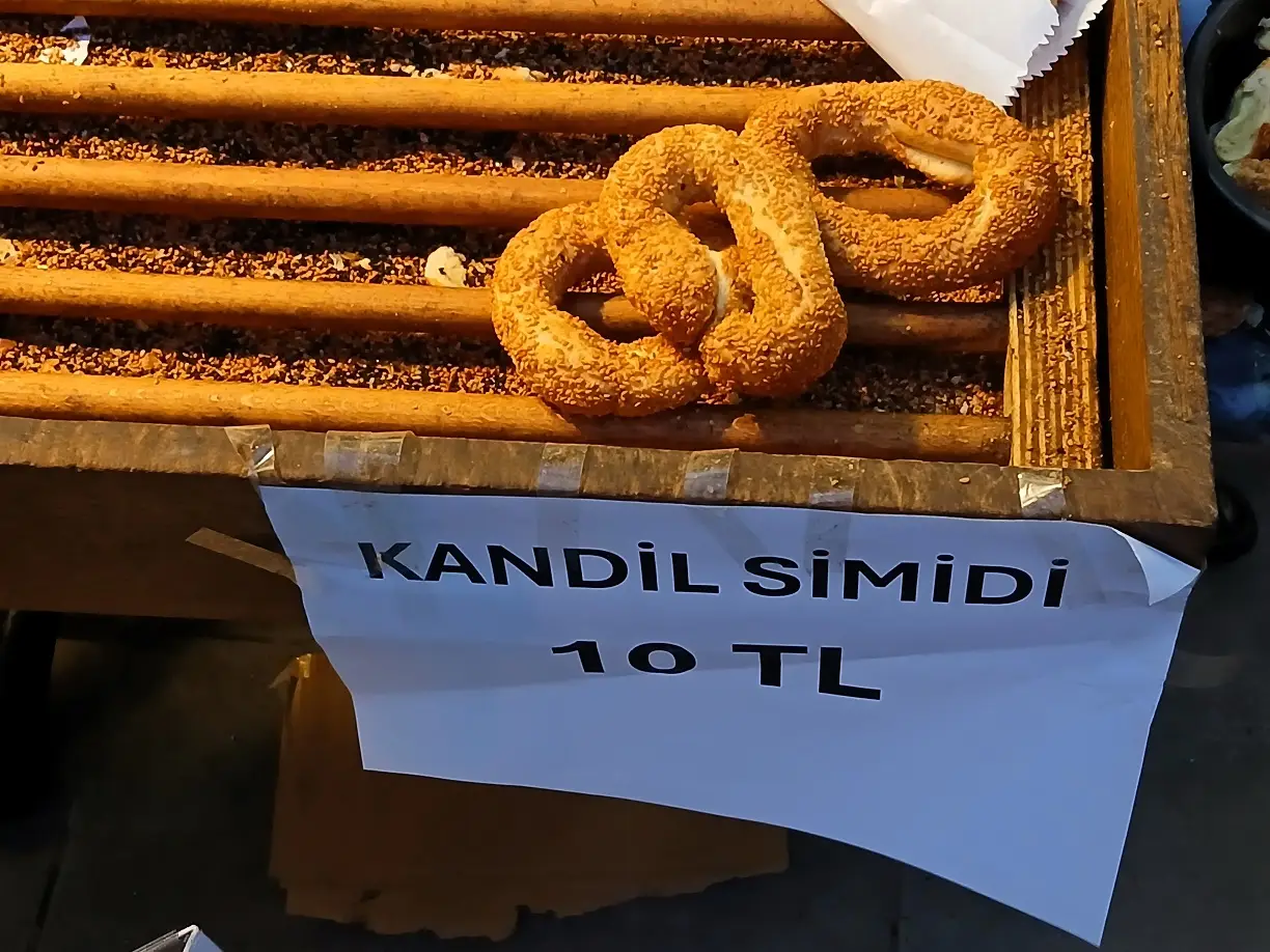 Farklı ebatlarda mahlepli ve tereyağlı olarak üretilen kandil simitleri büyüklüklerine göre 10-15-20 lira arasında satıldı.