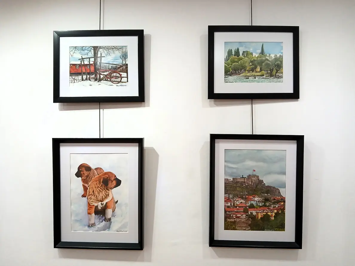 Biri karma olmak üzere, resimlerini üç farklı sergide sanatseverlerle buluşturduğunu söyleyen Abidin Erkoçak, ilk, orta dereceli okullar ve liselerle özel eğitim kurumlarında 38 yıl resim öğretmenliği yaptığını dile getirdi. Emekli olduktan sonra resim yapmaya başlayan Erkoçak’ın bu sergide 58 eseri yer alıyor.