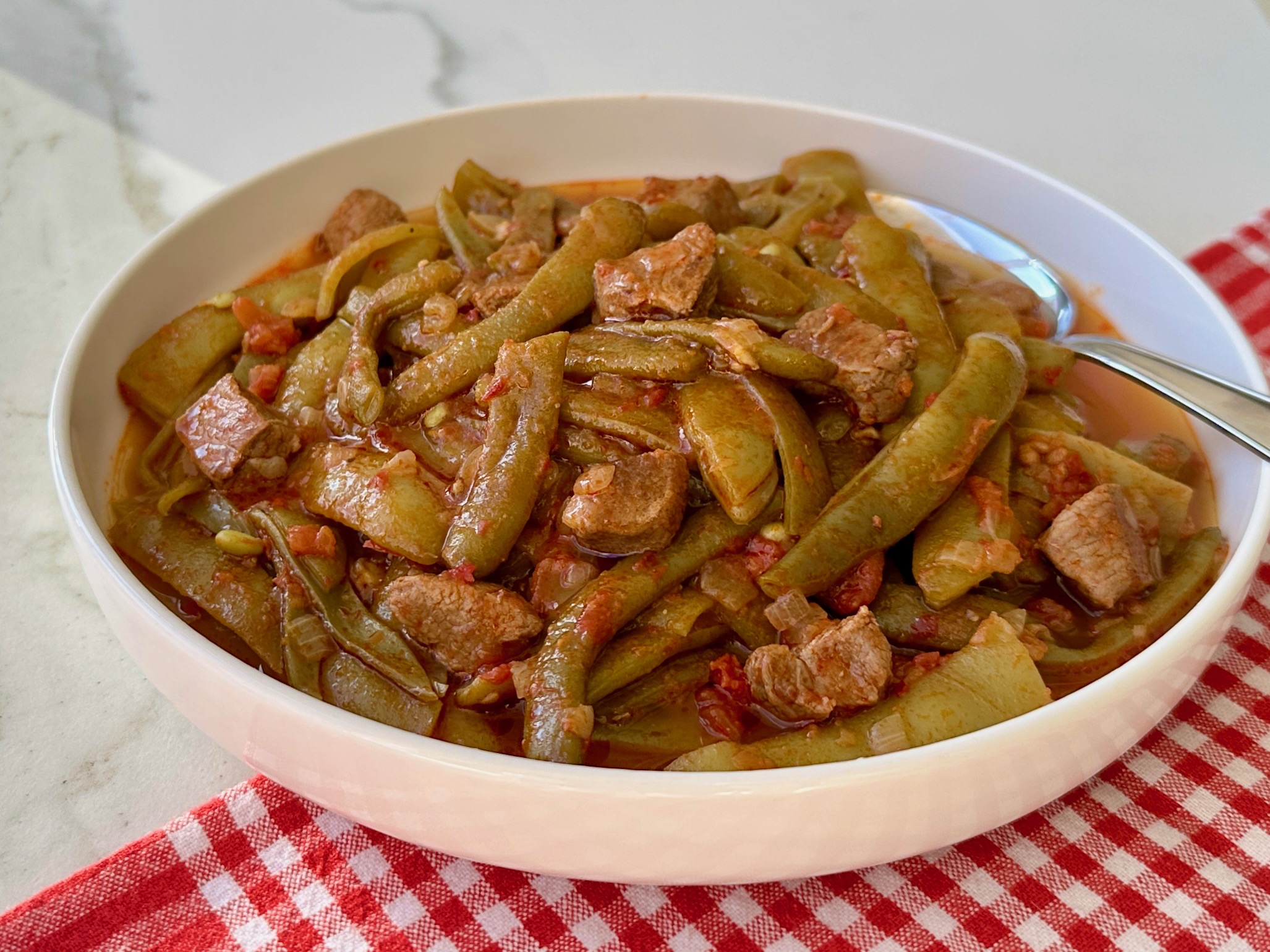 Karadeniz başta olmak üzere pek çok bölgede sofraların vazgeçilmezi olan etli taze fasulye, fasulye ve kuzu/dana etiyle pişiriliyor. Salça, domates, biber ve çeşitli baharatlarla zenginleştiriliyor.