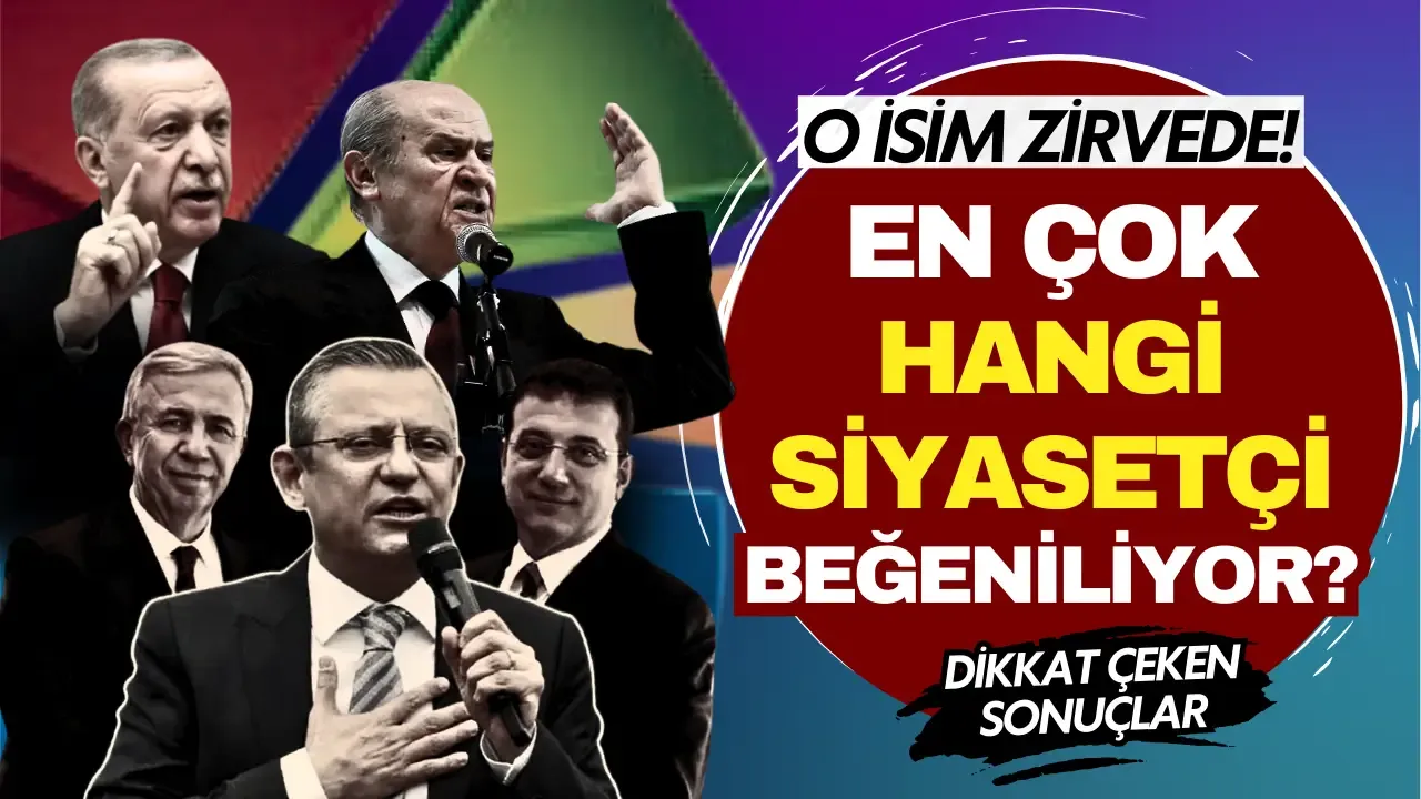 Katılımcılara "Türkiye'de en beğendiğiniz siyasetçi kimdir?" sorusu yöneltilirken, CHP'li Mansur Yavaş ilk sıraya yerleşti.