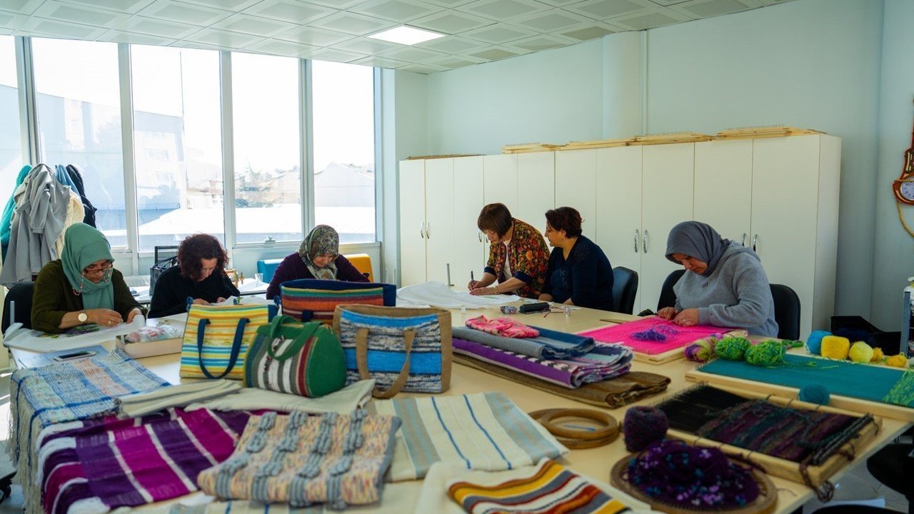 Elde edilen iplikler, Zübeyde Hanım Aile Yaşam Merkezi bünyesinde, uzman eğitmenler eşliğinde kursiyerlerin üretimine sunuluyor. Geleneksel dokuma teknikleriyle tezgahlarda işlenen bu iplikler, kursiyerlerin emekleriyle ilmek ilmek yeniden hayat buluyor. Böylece hem atıkların geri dönüşümü sağlanıyor hem de ortaya estetik ve kullanışlı ürünler çıkıyor.