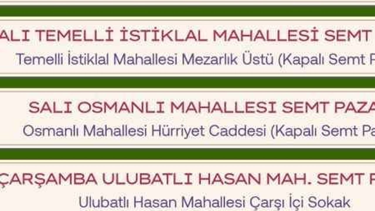 Vatandaşlar taze sebze, meyve almak ve diğer pek çok ihtiyacını tamamlamak için genellikle semt pazarlarını tercih ediyorlar. Mutfak alışverişi için semt pazarlarını tercih edenler, semt pazarlarının hangi günlerde, hangi pazarın hangi adreslerde kurulduğunu karıştırmaya başladı.