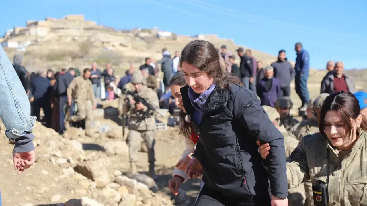 Mardin Havalimanı’nda jandarma ekipleri tarafından teslim alınan Rukiye Fidan, ring aracıyla Ömerli ilçesine bağlı Kaynakkaya kırsal mahallesinde kurulan taziye alanına götürüldü.