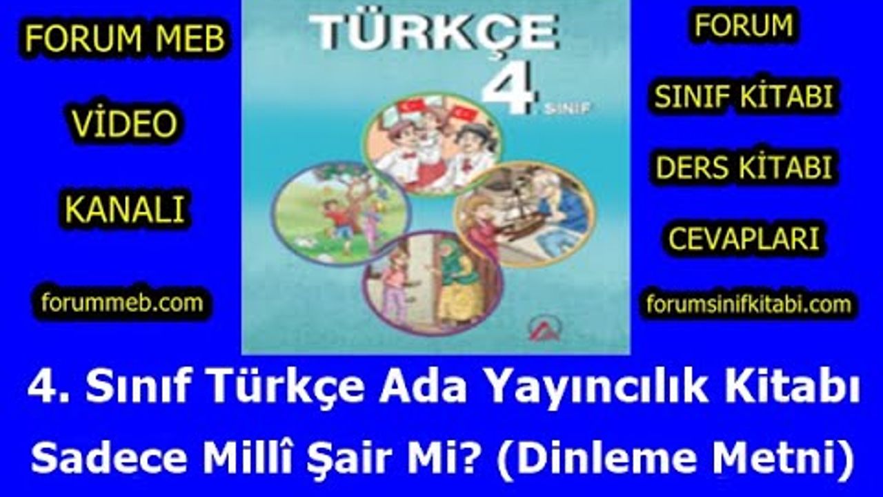 Sadece Millî Şair mi? Dinleme Metni cevapları, Ada Yayınları 4. Sınıf Türkçe Ders Kitabı kapsamında bulunan Millî Kültürümüz Teması içinde önemli bir öğrenme içeriği sunuyor. Bu metin ve etkinlikler aracılığıyla öğrenciler, Mehmet Âkif Ersoy’un yalnızca İstiklâl Marşı şairi olmadığını; aynı zamanda düşünceleri, yaşamı ve kişiliğiyle de milletimize örnek bir şahsiyet olduğunu kavrıyor.