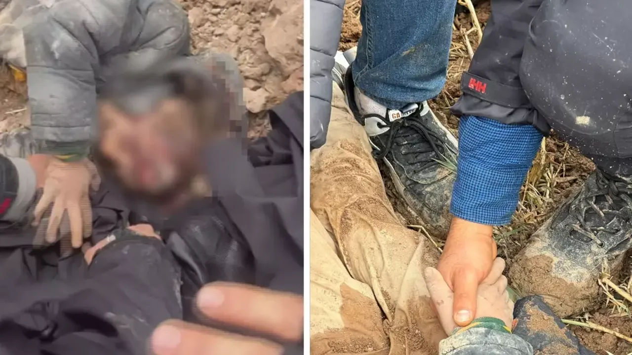 ÇOCUK TOPRAĞA GÖMÜLÜ HALDE YAŞAM MÜCADELESİ VERİYORDU