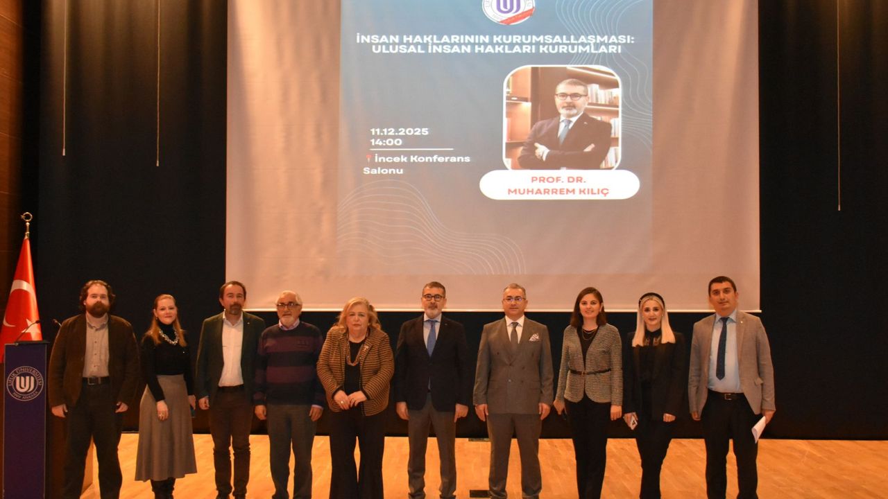 Ufuk Üniversitesi Hukuk Fakültesi tarafından düzenlenen “İnsan Haklarının Kurumsallaşması: Ulusal İnsan Hakları Kurumları” başlıklı etkinlik, 11 Aralık 2025 tarihinde İncek Konferans Salonu’nda gerçekleştirildi. Akademik çevrelerden ve öğrencilerden yoğun ilgi gören programda, insan haklarının kurumsal yapılar üzerinden nasıl güçlendirildiği ele alındı.